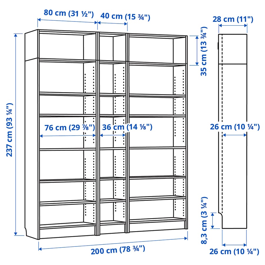Plitke i podesive police pomažu ti da prilagodiš BILLY biblioteku i omogućuju ti da je koristiš onako kako želiš – za odlaganje svakodnevnih predmeta, uspomena ili drugih stvari koje skupljaš.