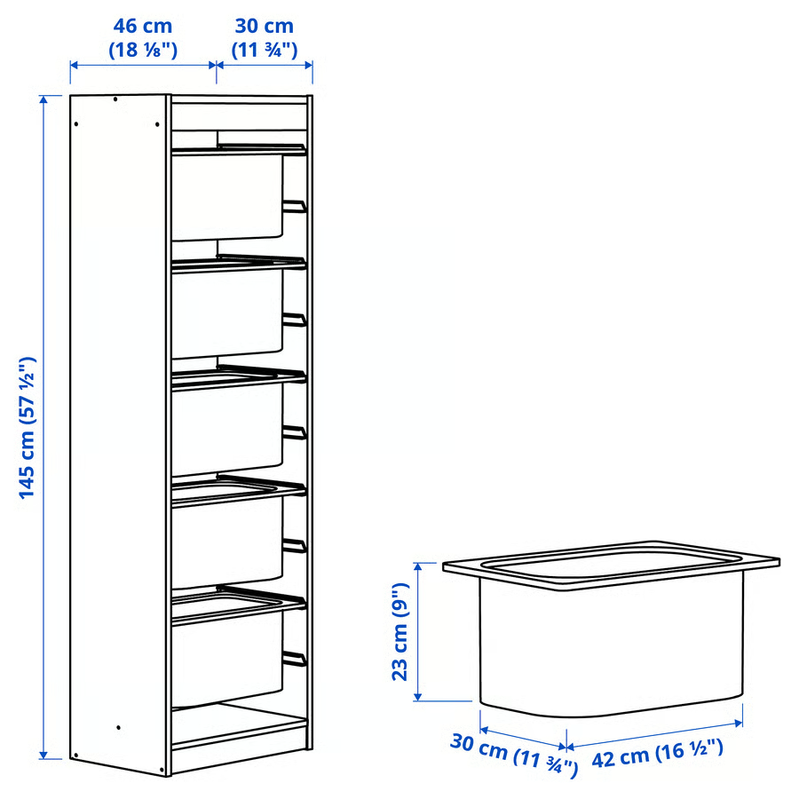 Kombin. odlaganje s kutijama, bijela/bijela, 46x30x145 cm