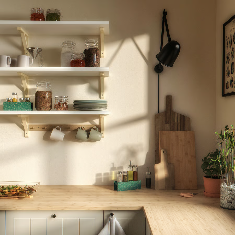 Može se postaviti u dva položaja – tako da visoke ivice budu okrenute prema gore za odlaganje stvari poput teglica sa začinima ili prema dolje ako više voliš koristiti stalak za začine za izlaganje.