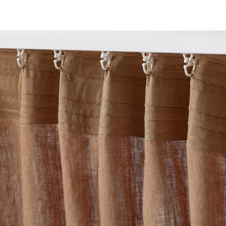Zavjese s trakom za zavjesu omogućavaju kačenje zavjese direktno na garnišnu korišćenjem džepova ili umetaka na šipki. Takođe možeš da okačiš zavjesu na kliznu garnišnu pomoću klizača i kuka.0