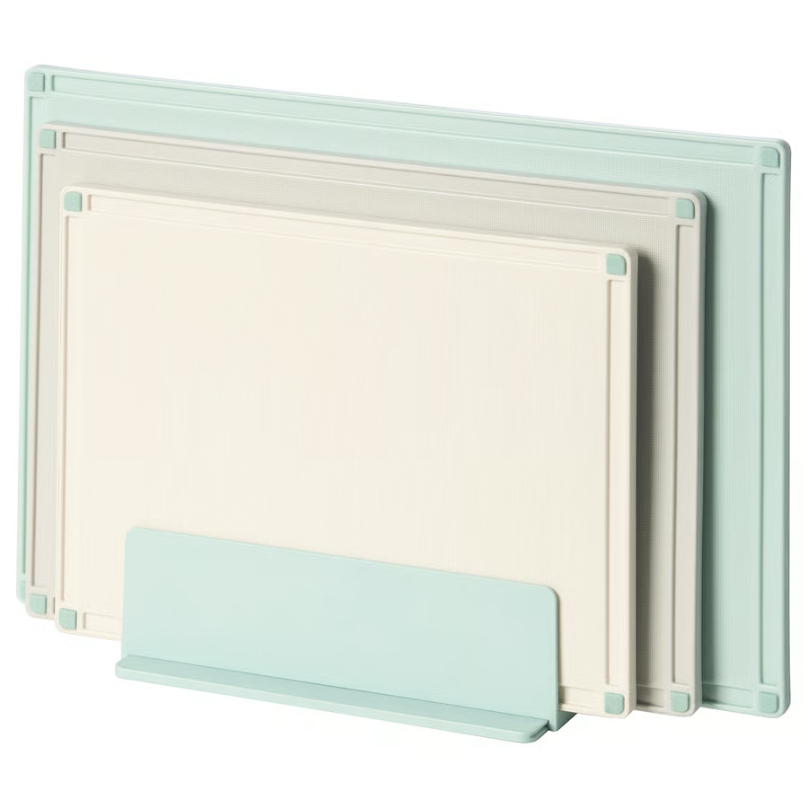 Daske za sječenje možeš odložiti uspravno u držač koji se dobija uz proizvod, što štedi prostor na kuhinjskoj radnoj ploči i olakšava da ih dohvatiš.