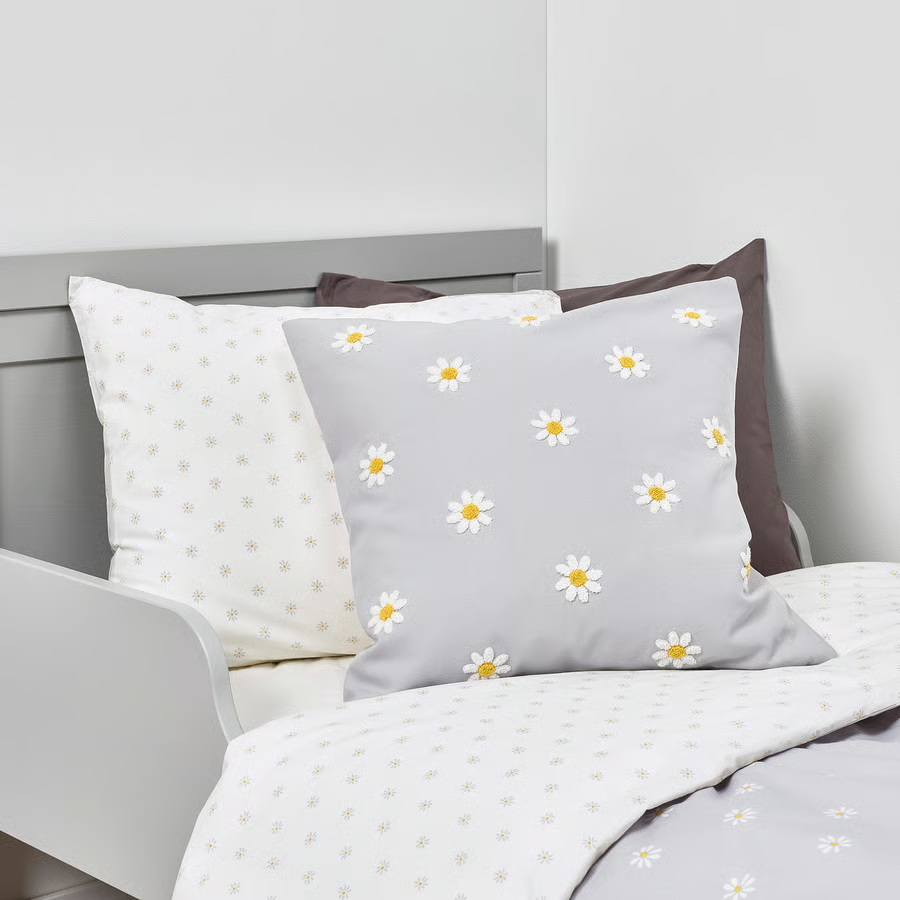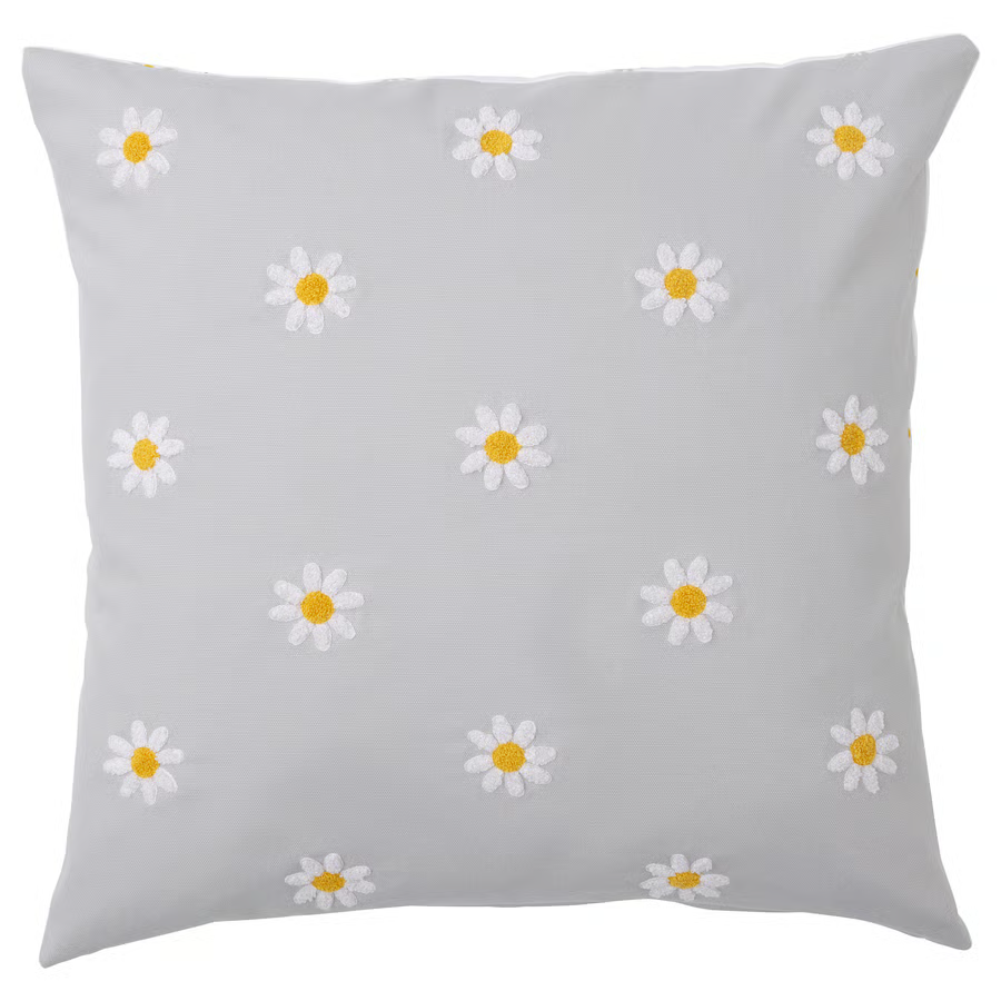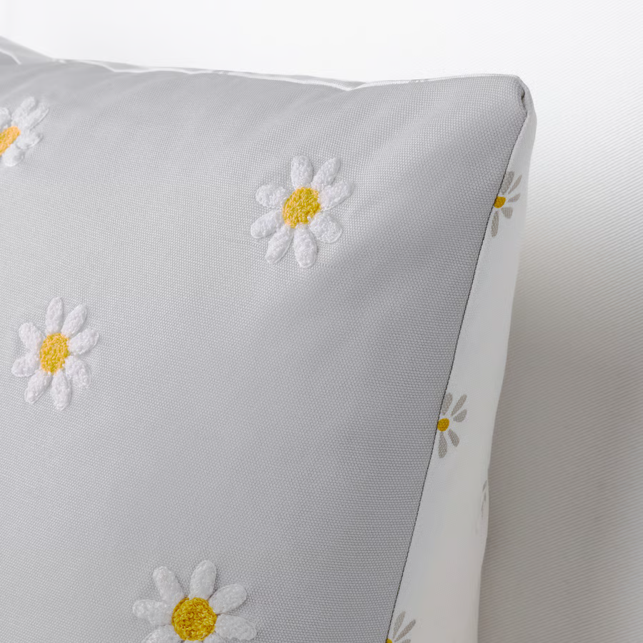 Navlaka za jastučić, cvjetna šara siva/bela, 50x50 cm